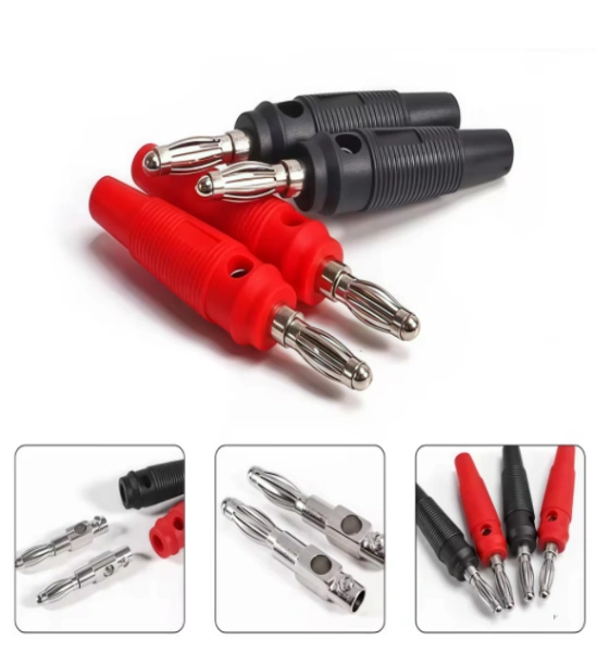 رأس بنانا 4 مم عالي الجودة مع قدرة تحميل تصل إلى 20 أمبير. مصمم لتوصيل أسلاك الاختبار والأجهزة الكهربائية بسهولة وأمان. مثالي للاستخدام مع معدات القياس والدوائر الكهربائية ومختبرات الإلكترونيات.