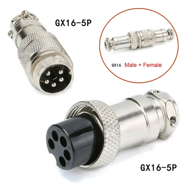 يوفر موصل GX16 5 دبابيس ذكر وأنثى حلًا موثوقًا ودائمًا لمجموعة واسعة من التطبيقات ذات الطاقة العالية، مما يضمن أداء مثالي وأمانًا.