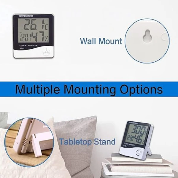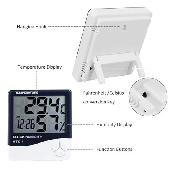 جهاز قياس درجة الحرارة الداخلي عالي الدقة HTC-1 هو أداة متعددة الوظائف مصممة لقياس درجة الحرارة والرطوبة داخل الأماكن المغلقة. يتميز الجهاز بشاشة رقمية كبيرة لعرض البيانات بوضوح، مع قدرة على التبديل بين قياسات درجة الحرارة المئوية والفهرنهايت. كما يحتوي على ساعة مدمجة مع وظيفة التنبيه. الجهاز مثالي للاستخدام في المنازل، المكاتب، الغرف الزراعية، والمختبرات التي تتطلب مراقبة دقيقة للظروف البيئية.