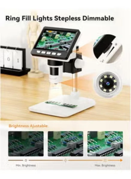 ميكروسكوب Inskam 307 LCD الرقمي مصمم لاحتياجات التكبير والفحص المتنوعة. مع نطاق تكبير قوي من 50X إلى 1000X، يوفر هذا الميكروسكوب صورًا واضحة وحادة للأشياء الصغيرة بدقة HD 1080P. تجعل شاشة LCD بحجم 4.3 بوصة العرض سهلًا، بينما تضمن 8 أضواء LED قابلة للتعديل أفضل إضاءة لفحصك. مزود ببطارية قابلة لإعادة الشحن بسعة 2000 مللي أمبير، مما يسمح باستخدامه في أي مكان بسهولة.
