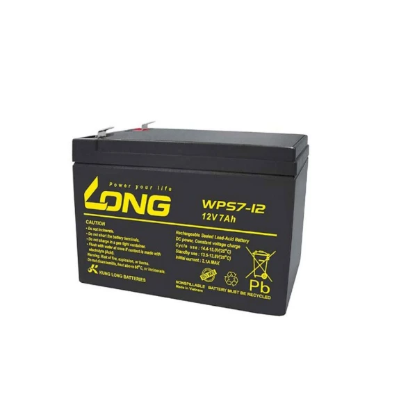 The Long Lead Acid Battery 12V 7Ah WPS7-12 is a reliable and durable power source for a variety of applications. Its 7Ah capacity ensures stable performance for UPS systems, emergency lighting, security alarms, and backup devices. Advanced lead-acid technology provides efficient recharging and consistent energy output.