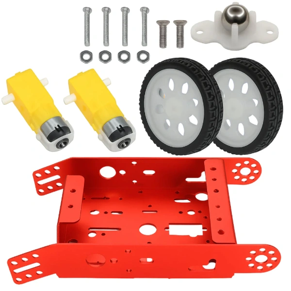 يعتبر هيكل الروبوت المعدني ثنائي الدفع (2WD) قاعدة قوية ومتينة لبناء الروبوتات الذكية عالية الأداء. يتميز هذا الهيكل المعدني عن الهياكل البلاستيكية التقليدية بقوته العالية واستقراره الفائق في حمل المكونات الإلكترونية الثقيلة. يأتي الطقم مع محركين DC وعجلات عالية الجودة، مما يوفر أساساً موثوقاً لمشاريع الأردوينو، راسبيري باي، أو ESP32. يحتوي الهيكل على فتحات جاهزة وموزعة بدقة لتسهيل تركيب الحساسات، والمتحكمات، وحوامل البطاريات.