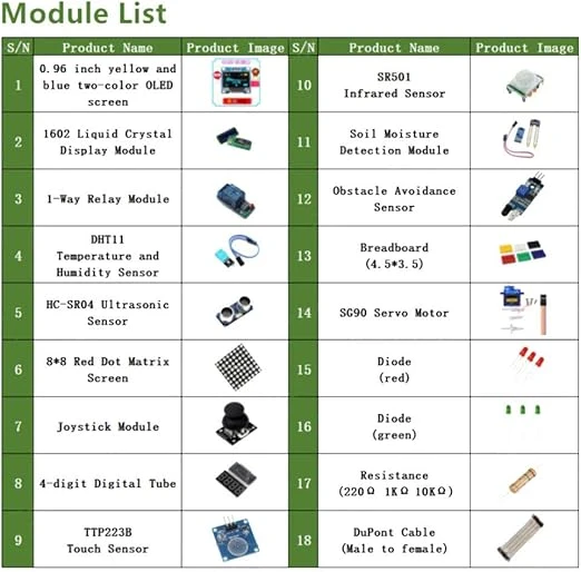 صُممت هذه المجموعة لتلبية احتياجات كل من المبتدئين والهواة ذوي الخبرة، حيث توفر لك كل ما تحتاجه للشروع في مشاريعك الإلكترونية. سواء كنت تبني دائرة LED بسيطة أو روبوتًا معقدًا، فإن هذه المجموعة تحتوي على المكونات اللازمة لتحويل أفكارك إلى واقع.