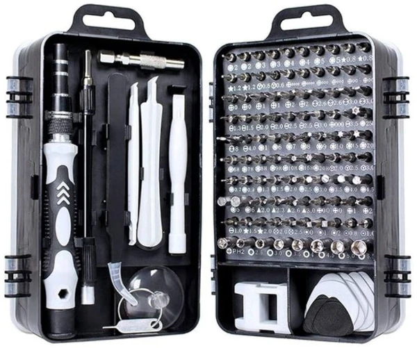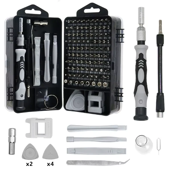 يتضمن أدوات فتح، ملاقط، أداة لرفع الشاشات، ممغنِط/مزيل مغنطة، ومحور مرن للوصول للأماكن الضيقة.